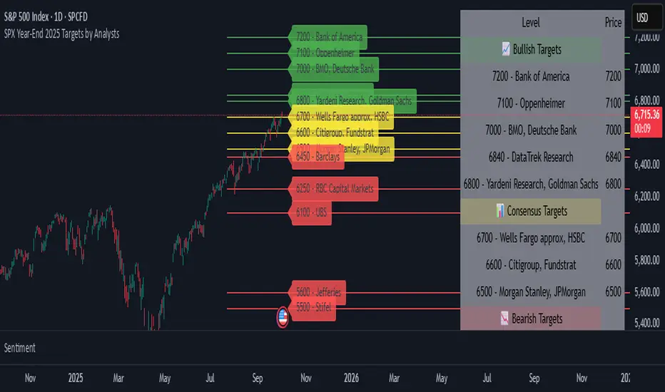 SPX Year-End 2025 Targets by Analysts