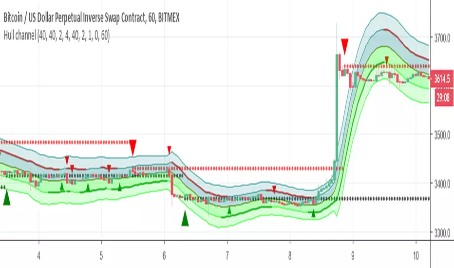 This Hull based channel , the resistance and the support based on Hull which also can be calculated as signal (big triangle) and represent by circles (red and black)