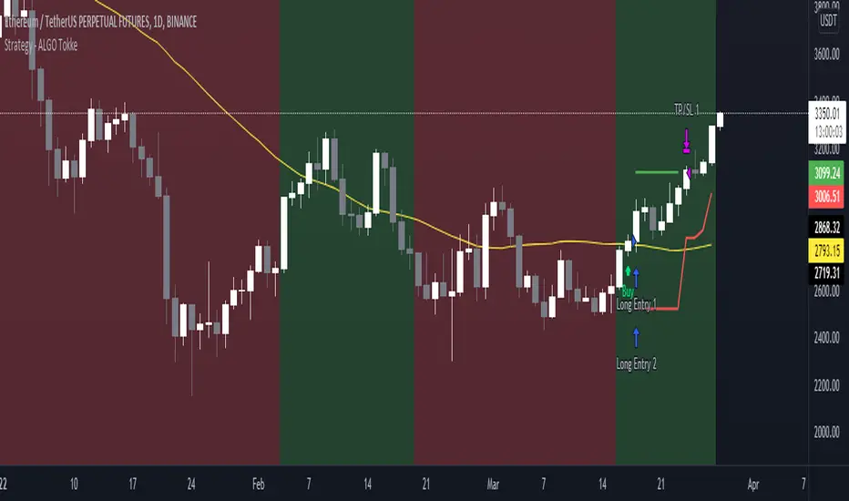 This strategy shows you the entry and exit signal with a standard 1.5 x ATR for Stop Loss and 2 x ATR for Taking Profit. You can adjust the settings to your needs.