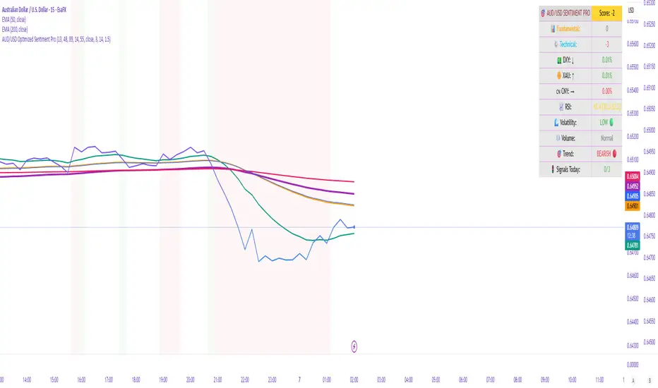 - Fundamental Score: Weighted changes in DXY, Gold, CNY, SPX, and AUD/CAD.