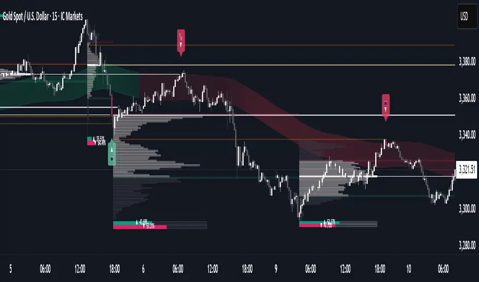 Swing/Session profiles; VAH/VAL + optional VA fill