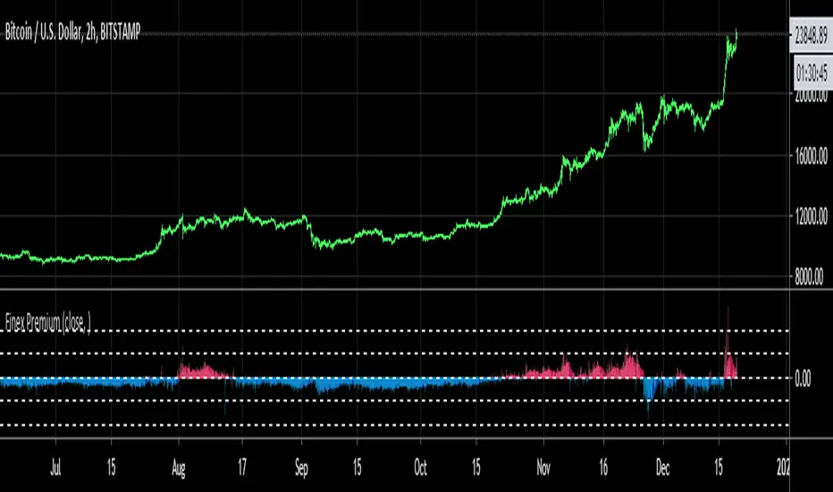 Bitfinex:BTCUSD premium/discount compared to market average spot exchanges.