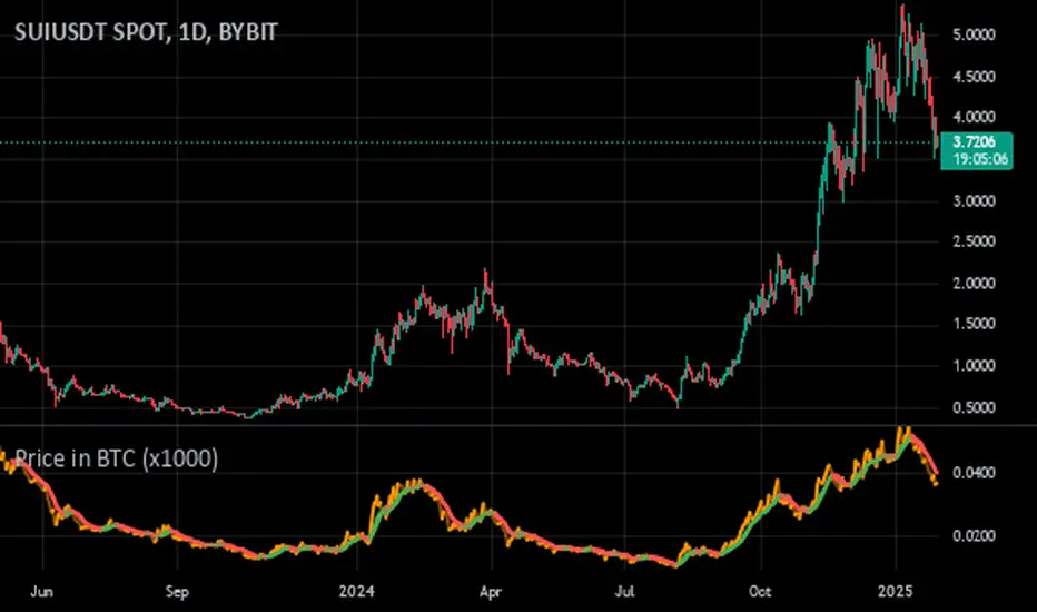 Shows how the current asset performed relative to BTC (COINBASE:BTCUSD) on the current timeframe
