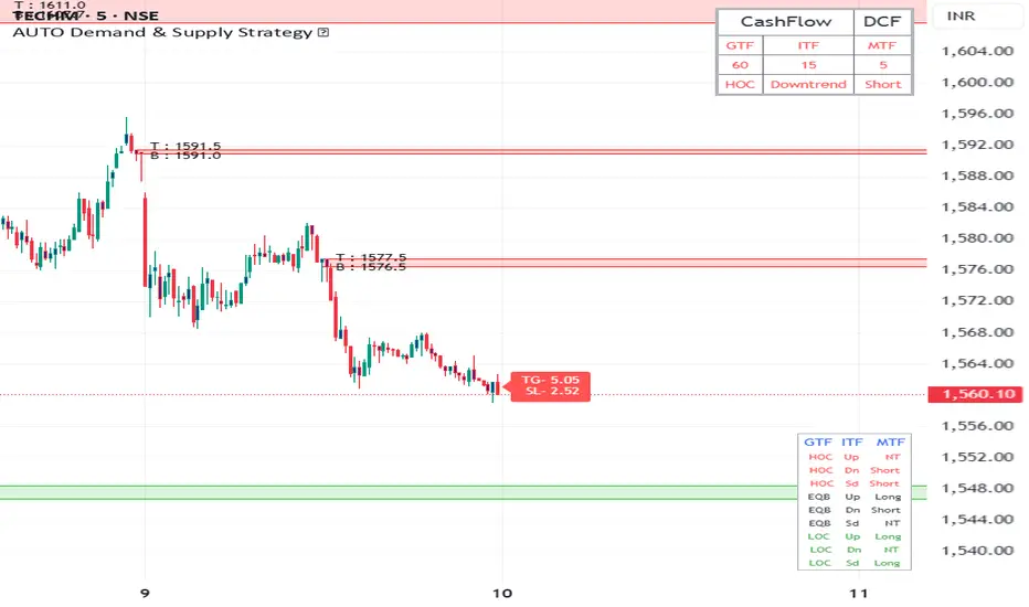 - 5. Indicator will Automatically Calculate ATR multiplier Stop-loss and Target in Minor Time Frame of Chosen Cashflow, Indicator gives option choose ATR multiplied value and Target Ratio, You have to consider this Stop-loss & Target value only when the candle retest(touches) the zone.