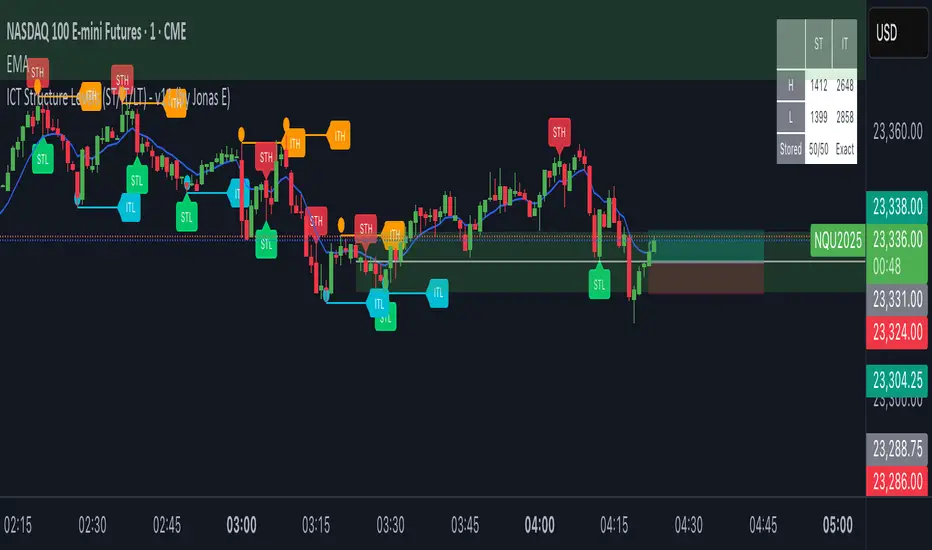 This indicator is designed for traders following ICT-style market structure analysis. It identifies Short-Term (ST), Intermediary (IT), and Long-Term (LT) swing highs and lows, but with a stricter filter that reduces false signals.