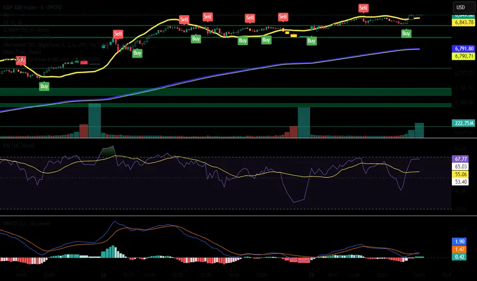 indicator("SPX +10 / -10 From 9:30 Open", overlay=true)