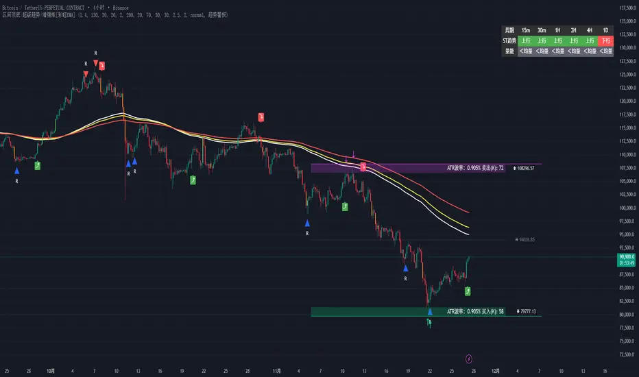 · 功能:实时监控从15分钟到日线级别的SuperTrend趋势方向以及成交量状态,帮助交易者进行多周期共振分析。