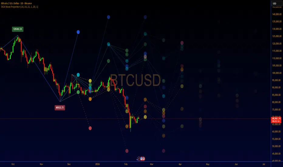 A sophisticated educational indicator for Elliott Wave and Wave Theory practitioners, offering adaptive pivot detection and multi-scenario projections to support structured technical analysis. Built for traders seeking precision in wave identification, it integrates volatility-adjusted zigzags with Fibonacci-derived targets, providing layered insights into potential continuations and reversals.