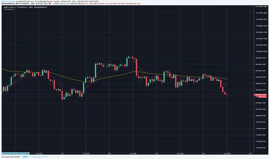 This is a 3(+1) in one EMA using the Fibonachi levels of 8, 13, 55 & 200.