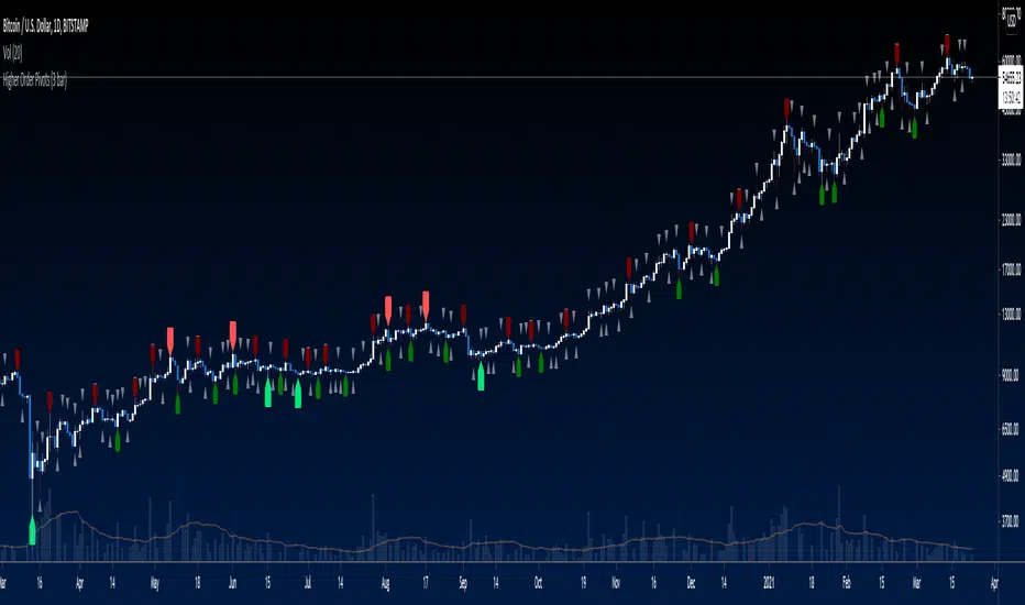 As it can take a significant and variable amount of time before higher order pivots are confirmed, it is generally inadvisable to use higher order pivots for live trading!