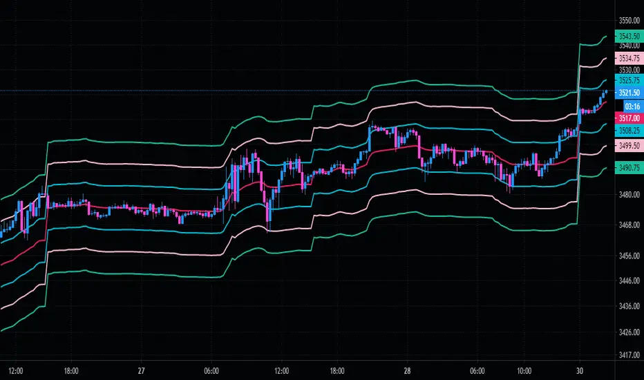 This is a pretty straight-forward script. I just wanted to see percent bands around the VWAP after looking at the standard deviation bands for a while and even dabbling with keltner channels. This is the cleanest in my opinion. The script is open so feel free to poke around!