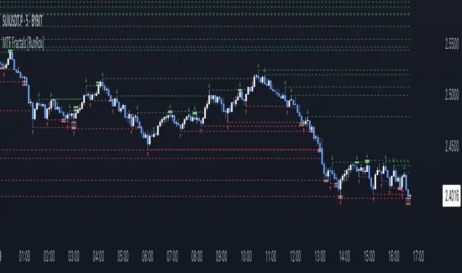 🔽 MTF Fractals is a powerful indicator designed to visualize fractals from multiple timeframes directly on your chart, highlight liquidity sweeps at these fractal levels, and provide several additional features we’ll cover in detail below.