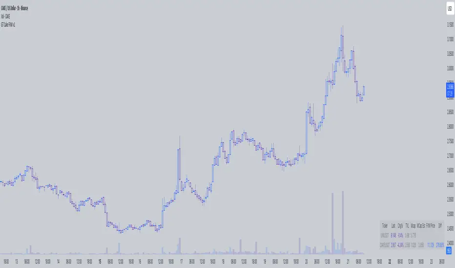 This indicator estimate the Fair Value Price of PancakeSwap token CAKE utilizing different proprietary formulas that i develop, it consider a fair value when the price is within +10% to -10% of target price.