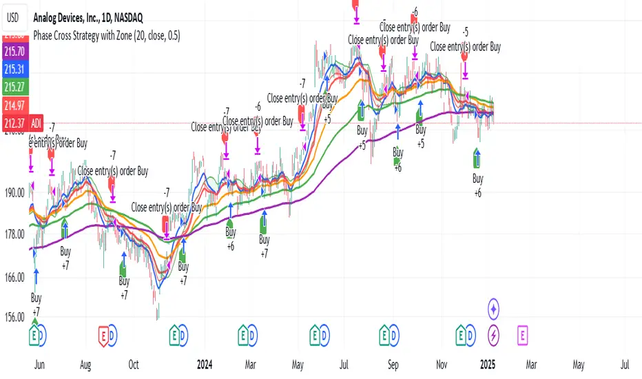 ### Introduction to the StrategyWelcome to the **Phase Cross Strategy with Zone and EMA Analysis**. This strategy is designed to help traders identify potential buy and sell opportunities based on the crossover of smoothed oscillators (referred to as "phases") and exponential moving averages (EMAs). By combining these two methods, the strategy offers a versatile tool for both trend-following and short-term trading setups.