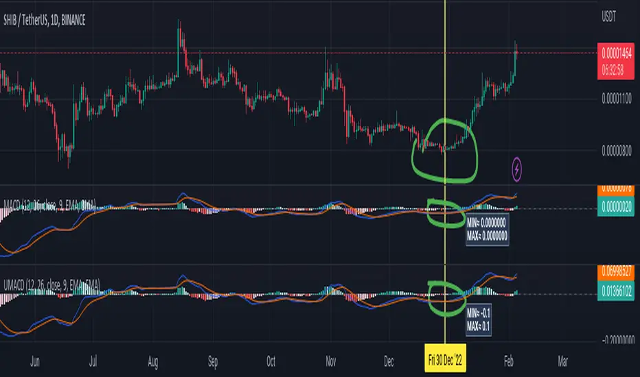 Now you can compare the UMACD of Shiba with Bitcoin without any problem in matamatics space.No need to use virtuality and its important in Optimization problems that we rediuse the problem from a picture to a number(A plot to a list of numbers)