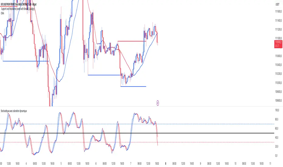 Stochastic Color. A momentum indicator that compares a particular closing price of an asset to a range of its prices over a specific period of time. It helps identify overbought and oversold conditions in the market. The indicator ranges from 0 to 100, with readings above 80 typically considered overbought and readings below 20 considered oversold. It is often used to anticipate potential price reversals.