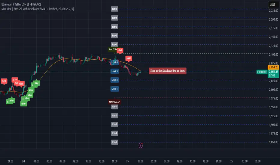 Min-Max | Buy-Sell Indicator with Levels and SMA (15m)A professional intraday trading indicator that identifies yesterday's high/low levels, dynamic