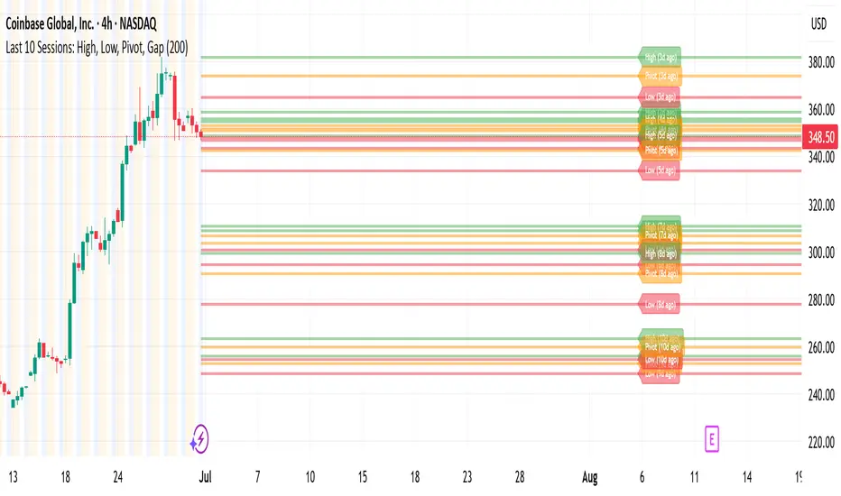 This indicator highlights the most important price levels from the last 10 completed trading sessions to help intraday and swing traders quickly spot potential support, resistance, and price reaction zones.