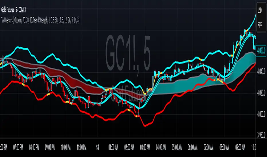 Trend Architect Overlays is a comprehensive technical analysis suite that combines multiple advanced overlay indicators into a single tool. Designed for traders who want a clean, professional chart with powerful trend identification, dynamic channels, and intelligent candle coloring, this indicator adapts to your trading style with configurable components.