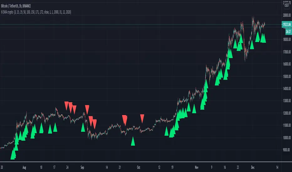 For long : we check that the EMA are in ascending order like EMA 5 > EMA 10 > EMA 20 .... and at the same time that last close of candle is above all of them.