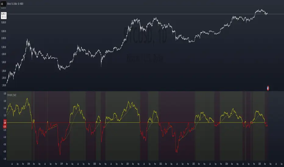 The Short-Term Holder Net Unrealized Profit/Loss Ratio (STH-NUPL) is an analytical tool designed to approximate the unrealized profit or loss of Bitcoin’s short-term holders (STHs)—typically those holding coins for less than 155 days—within the constraints of TradingView’s price-based environment. Drawing inspiration from the canonical STH-NUPL metric, which assesses the difference between the market value and realized value of STH-held coins, this indicator adapts the concept into a normalized ratio using Bitcoin’s price data as a proxy. It offers a window into the sentiment and behavior of short-term market participants, who are often more sensitive to price fluctuations than long-term holders.