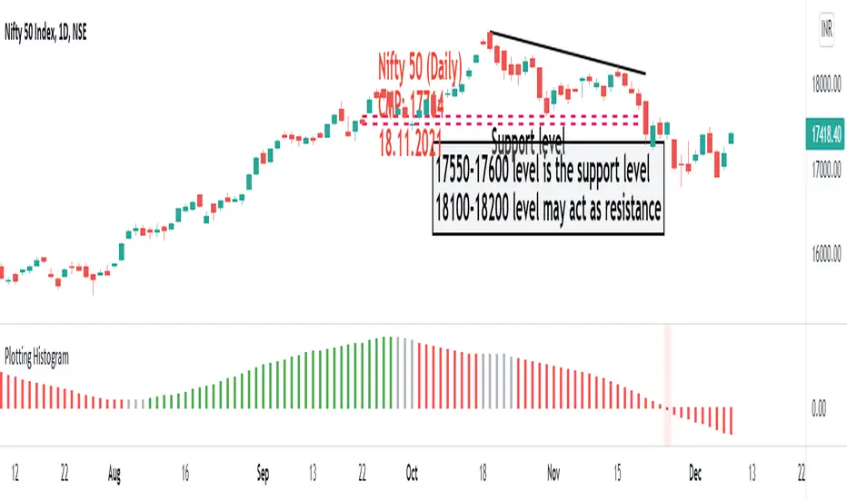 This script plots the distance between two moving averages in the form of histogram. In this case, I am using 20 day moving average and 50 day moving average.