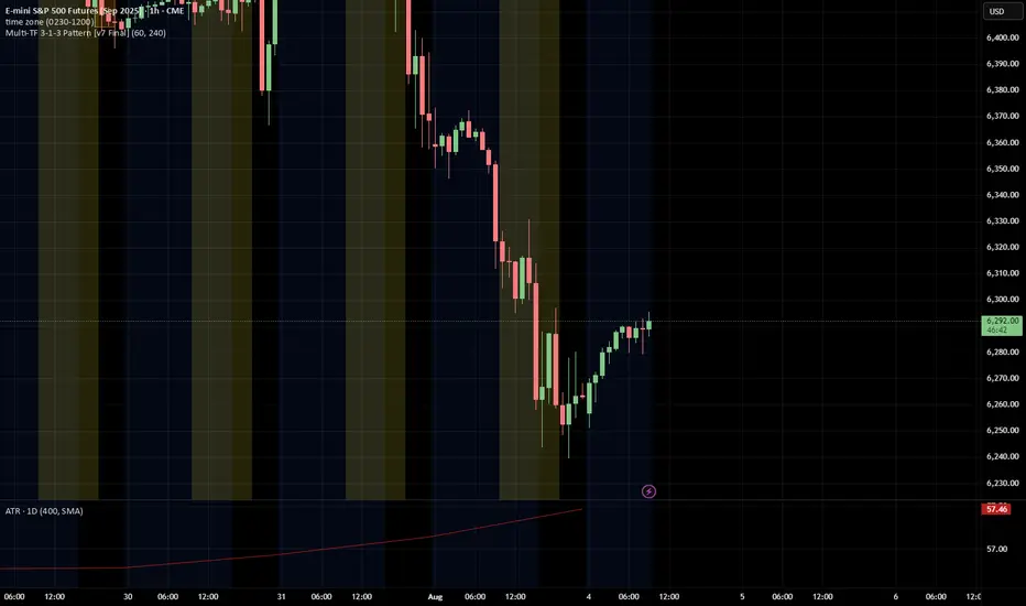 This Pine Script indicator analyzes and visualizes a specific candlestick pattern called the "3-1-3 Pattern" across multiple timeframes. Here's what it does:
