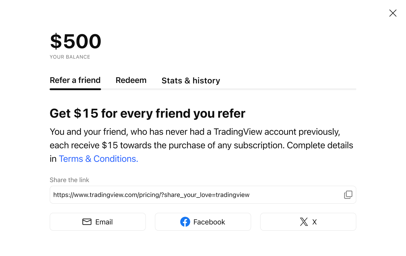 Once your friends join the platform with an upgraded plan, you'll be rewarded with $15.