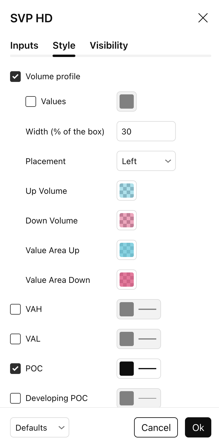 Note: you can read more about traits shared by all Volume Profile indicators in the Volume Profile Indicators: basic concepts Help Center article. The text below describes features unique to this particular Volume Profile indicator.