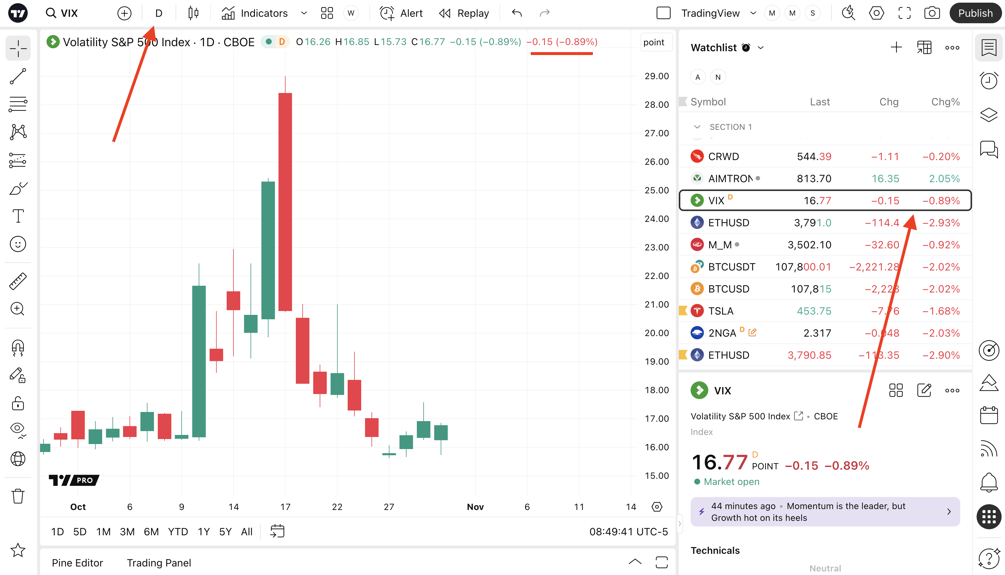 These are the change and change % from the previous daily bar. The data in the watchlist is set to 1D interval by default, therefore the change and change % values are also calculated on 1D interval.