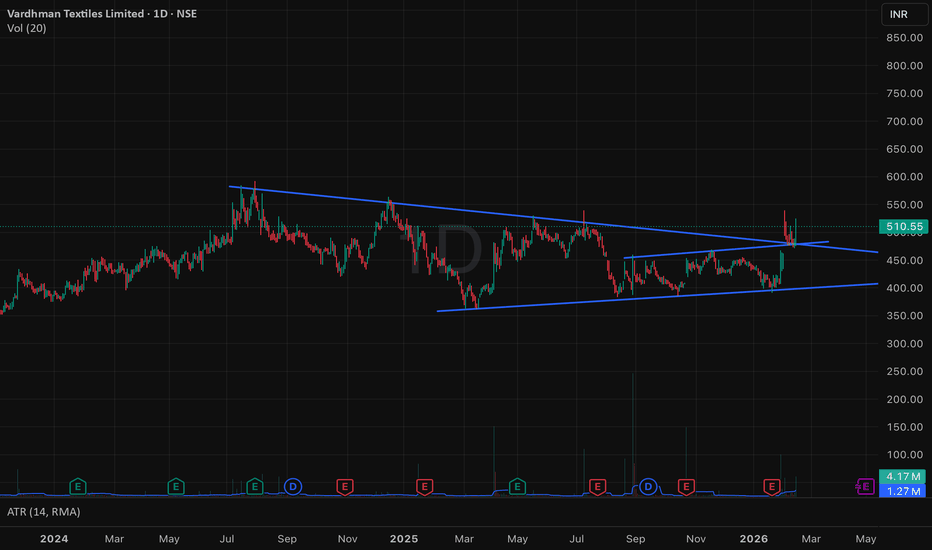 Vardhman Textiles (NSE: VTL) – Recent Update & Technical OutlookThe government extended the exemption of import duty on raw cotton (HS 5201) until December 31, 2025, aimed at supporting the domestic textile sector and exporters.