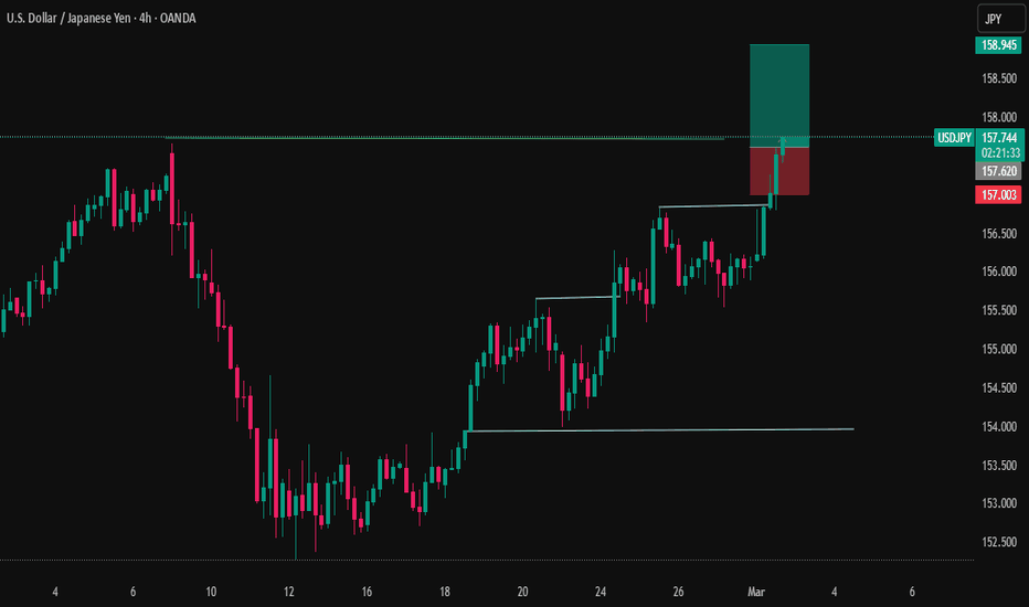 USD/JPY: The 157.00 Breakout & Path to 160.00The Japanese Yen is under immense pressure as the US Dollar capitalizes on a "perfect storm" of hawkish Federal Reserve expectations and safe-haven flows. This chart captures the exact moment a high-probability breakout transitioned into a trending expansion.